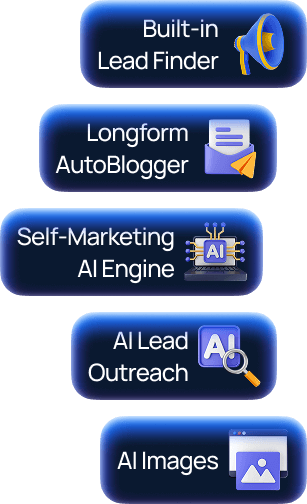 • Receive all essentials integrated—premium text, hosting, SEO, AI creation, and prospecting.