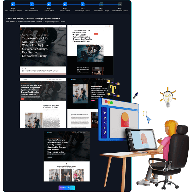 Just upload documents, insert URLs, or input information regarding the business you are designing for.