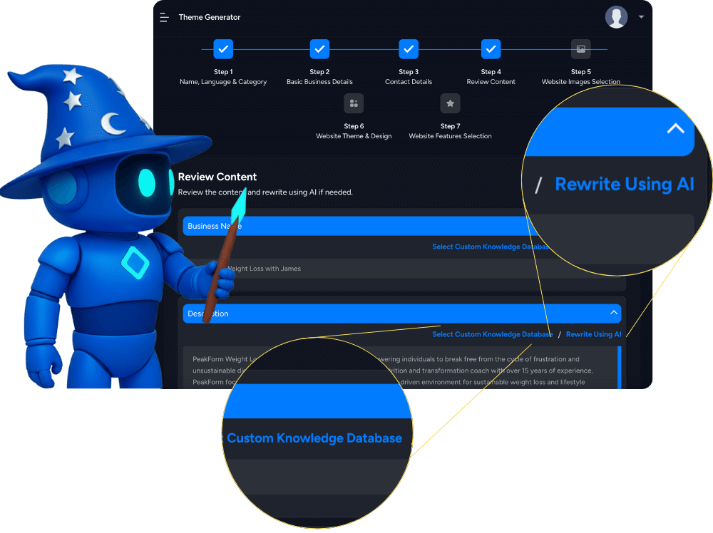 • AI utilizes Custom Knowledge to build brand-aligned, distinct sites.